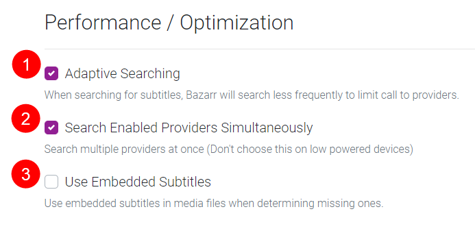 1. When searching for subtitles, Bazarr will search less frequently to limit calls to providers.
