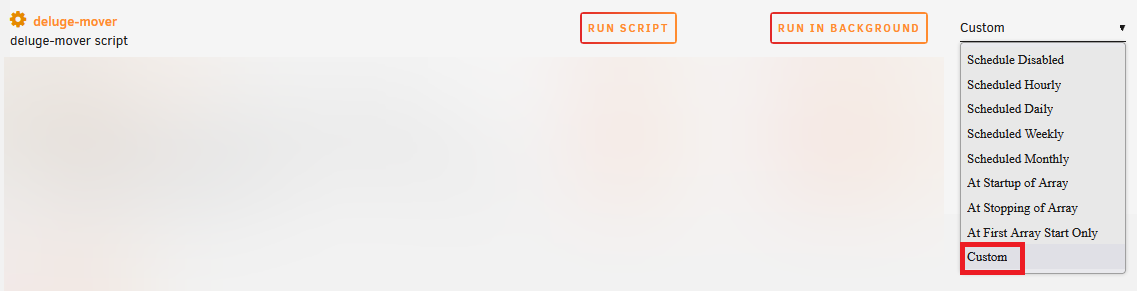 Click the schedule dropdown to choose when the script should run. We want to select Custom.